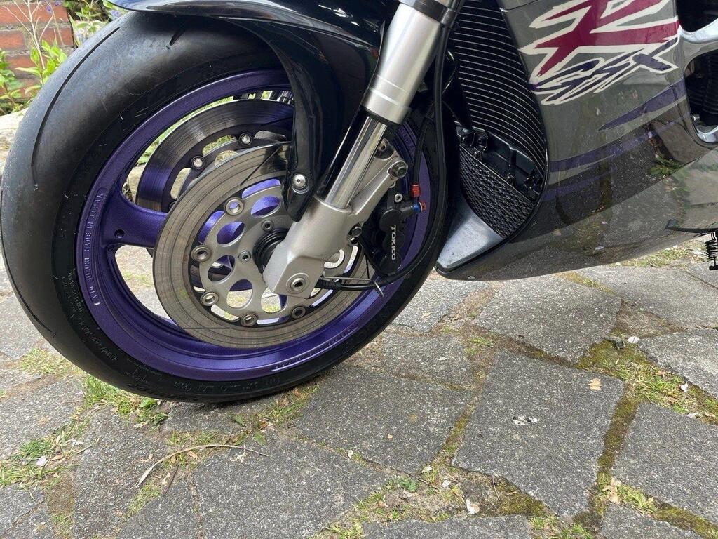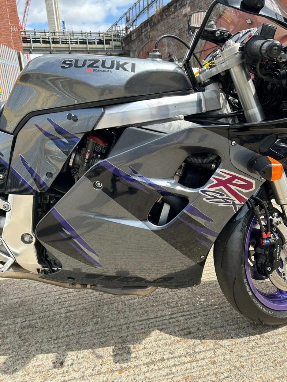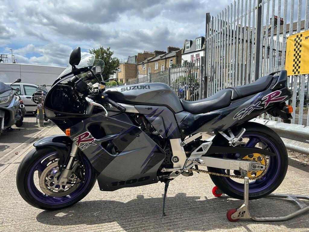 The 1993 Suzuki GSXR 1100 is a high-performance super sport motorcycle . It features metallic paint in superb original condition .The petrol tank inner is spotless with no rust whatsoever. Yoshimura/Mikuni flat slide Carbs in excellent condition set up with a Vance and Hines complete exhaust system and a K&N Air filter , previously registered overseas V5 registration document present Bike is in excellent condition for 32yrs old as you can see from photos. I don’t think you will find a better looking old GSXR 1100. New tyres, new battery and braided hoses .Will be sold with a years MOT