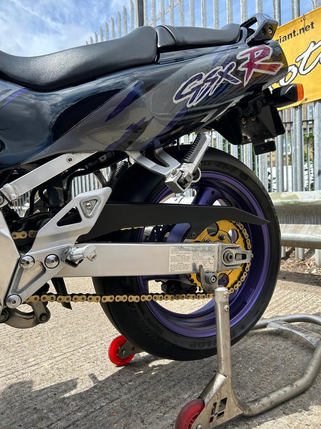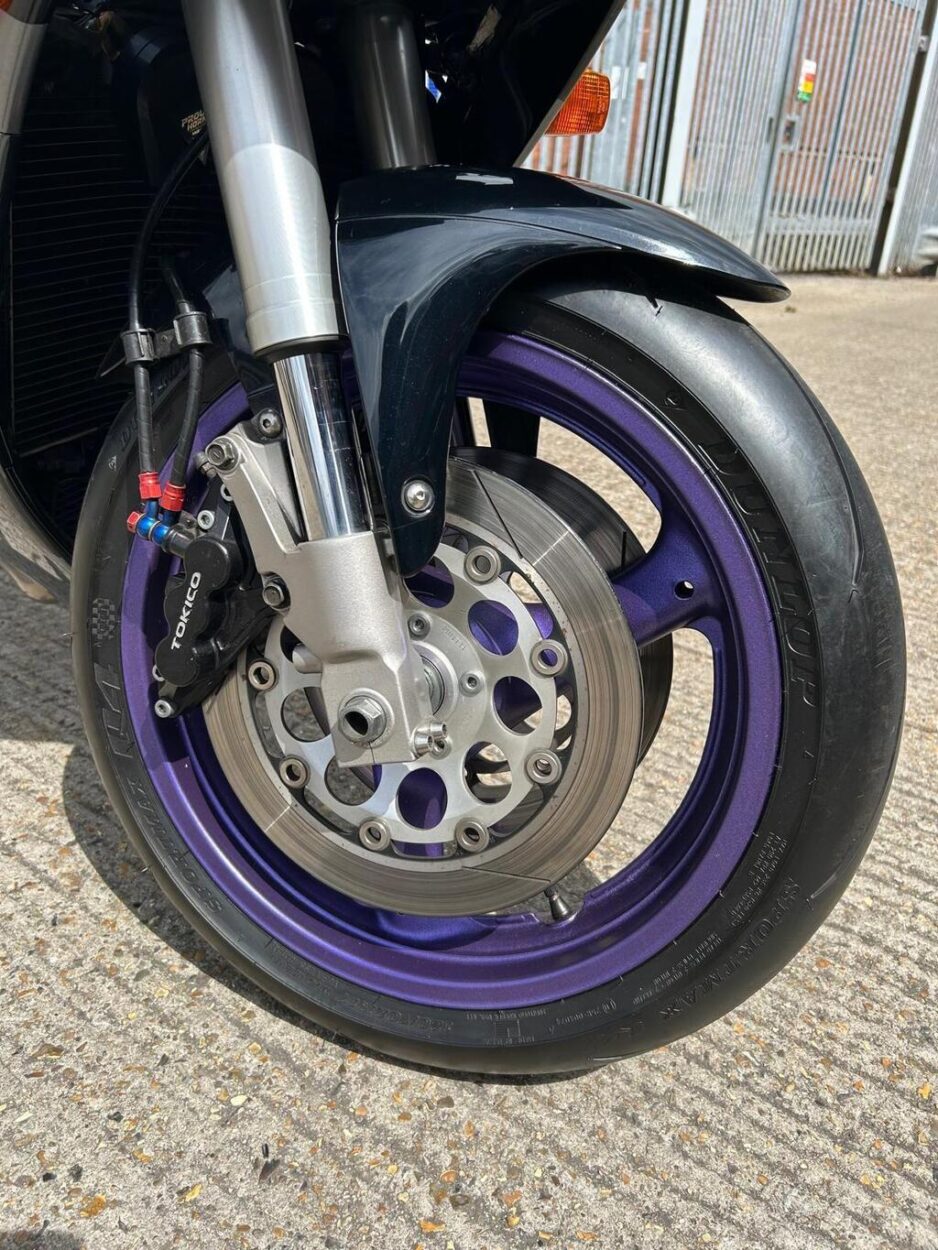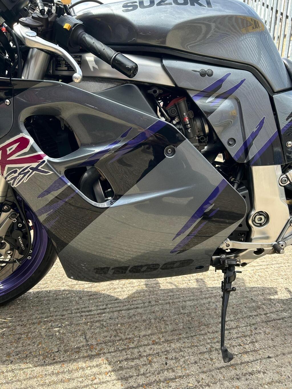The 1993 Suzuki GSXR 1100 is a high-performance super sport motorcycle . It features metallic paint in superb original condition .The petrol tank inner is spotless with no rust whatsoever. Yoshimura/Mikuni flat slide Carbs in excellent condition set up with a Vance and Hines complete exhaust system and a K&N Air filter , previously registered overseas V5 registration document present Bike is in excellent condition for 32yrs old as you can see from photos. I don’t think you will find a better looking old GSXR 1100. New tyres, new battery and braided hoses .Will be sold with a years MOT
