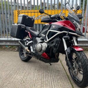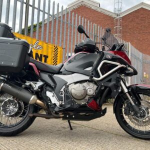 A stunning example Crosstourer originally supplied in silver re painted professionally by Boystoys to a very high standard .Invoice supplied .Corbin seat specially ordered from the states with red piping to match ,GivI Trekker matching top box and panniers with matching key,Honda heated grips,Givi hand guards with screen extenders,Bash plate,Leo Vince exhaust and K@N air filter,Givi tank bag,Puig Led spot lights.Radiator guard,Rear hugger,Puig screen,Recent Pirelli scorpion Trail II Tyres.Recent Honda pads.R@g fork protectors .For security Meta Defcom 3.1 alarm immobilizer and a Meta Tracker .Top to bottom service and ready to go anywhere. All invoices for the parts and the work supplied 7 SERVICE STAMPS MAINLY BY HONDA