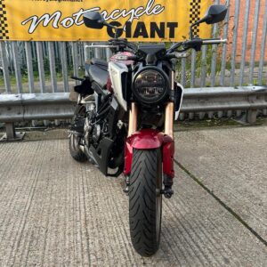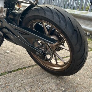 An extremely easy bike to get along with.It’s handling is sublime. It’s ridiculously light – at 126kg ready to ride – it’s a good 15/20kg less than the rest of the pack.