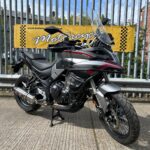 The 2023 Voge 500DSX is an A2-compliant, budget-friendly adventure bike featuring a 471cc parallel-twin engine, 19-inch front spoked wheel, and KYB suspension. It offers a high-spec package including Nissin brakes, Bosch ABS, and a TFT display with tyre pressure monitoring. It is designed as an off-road capable